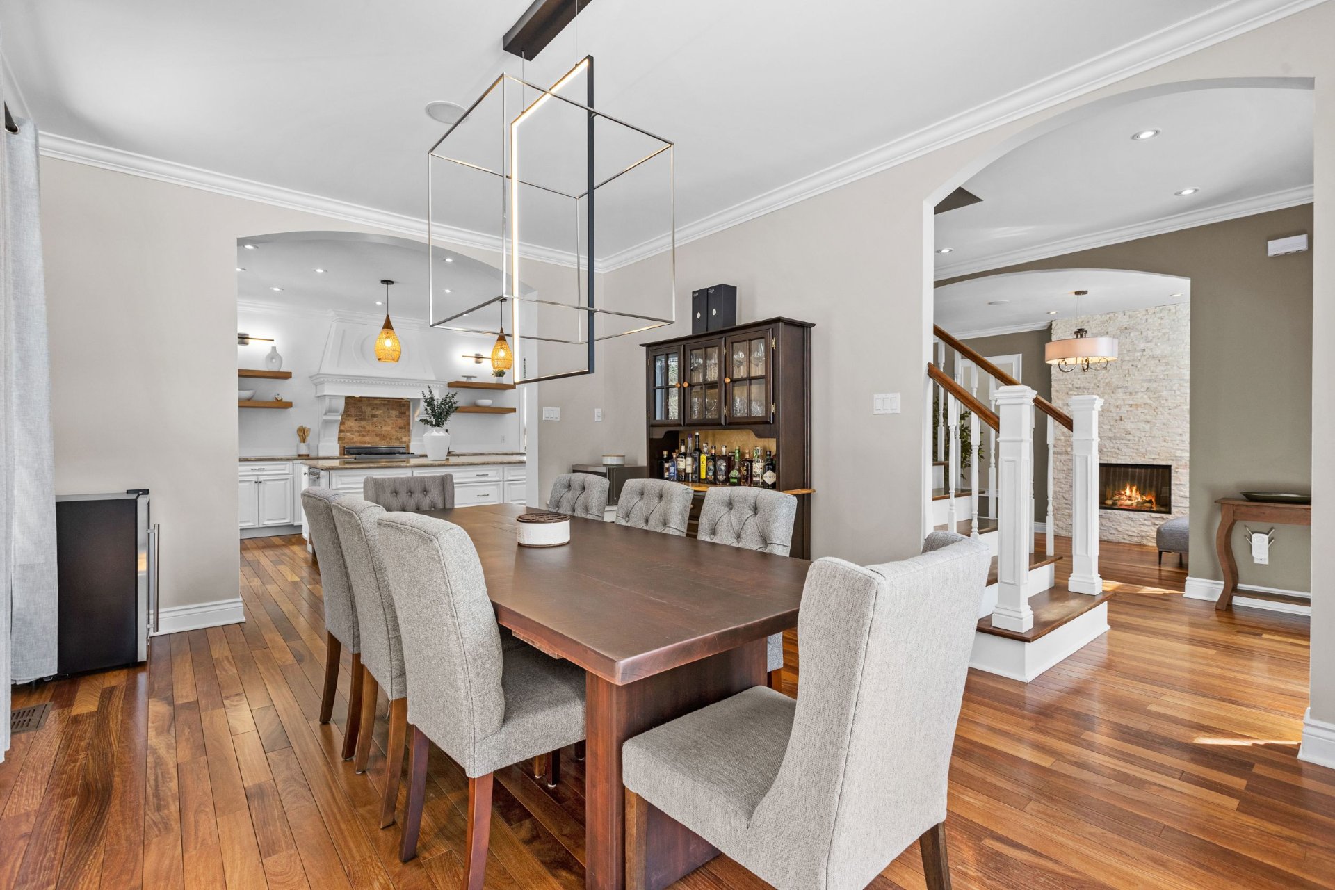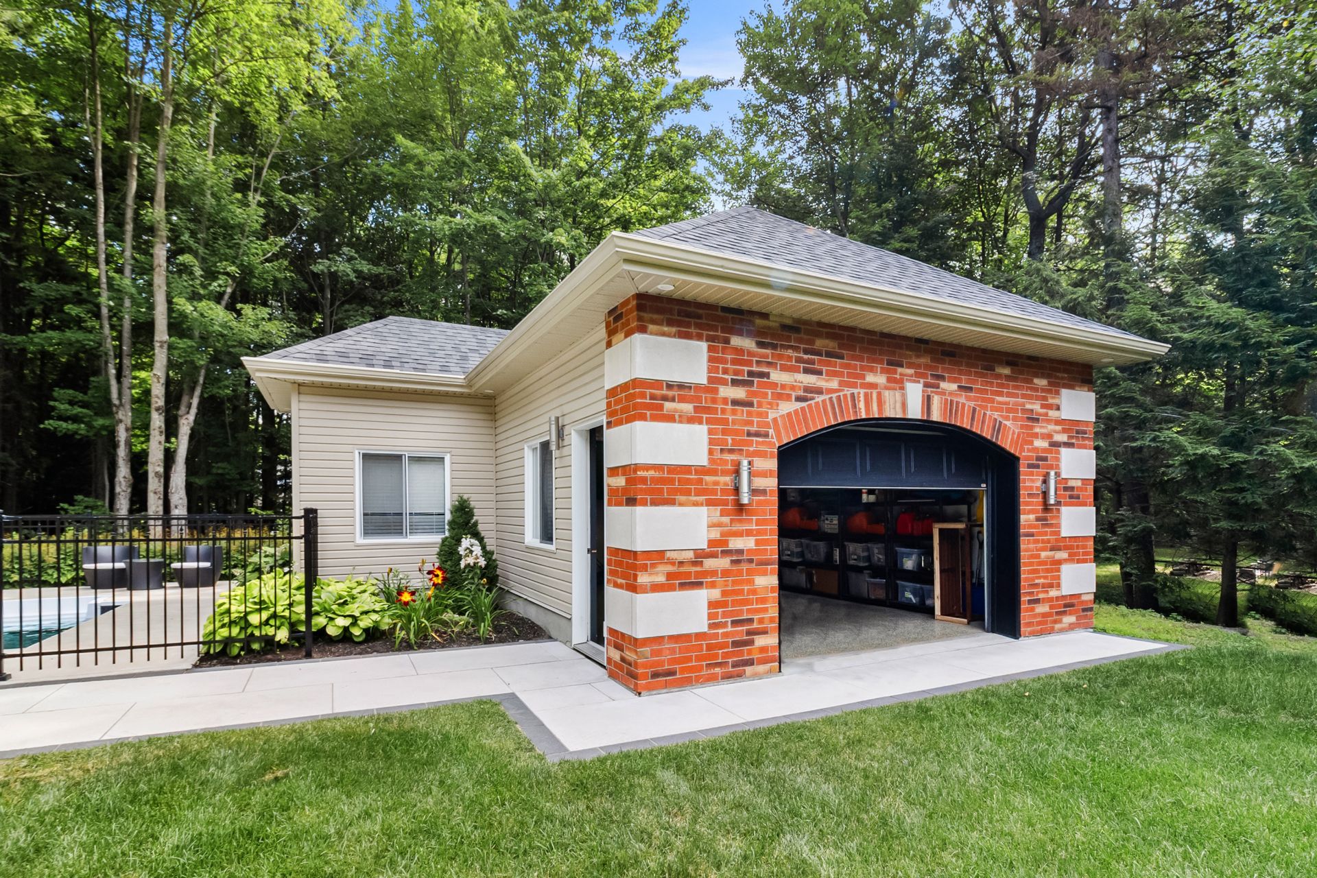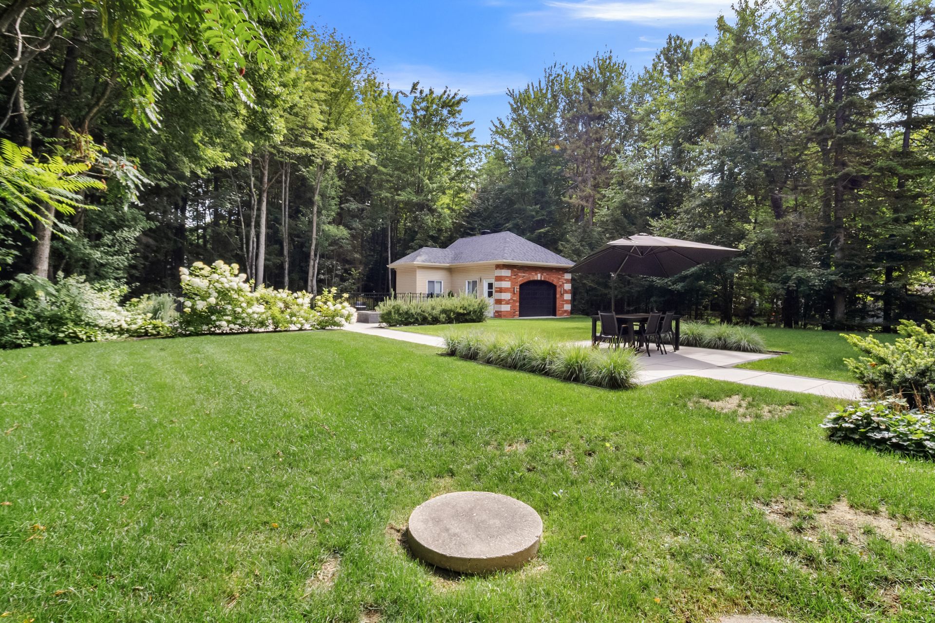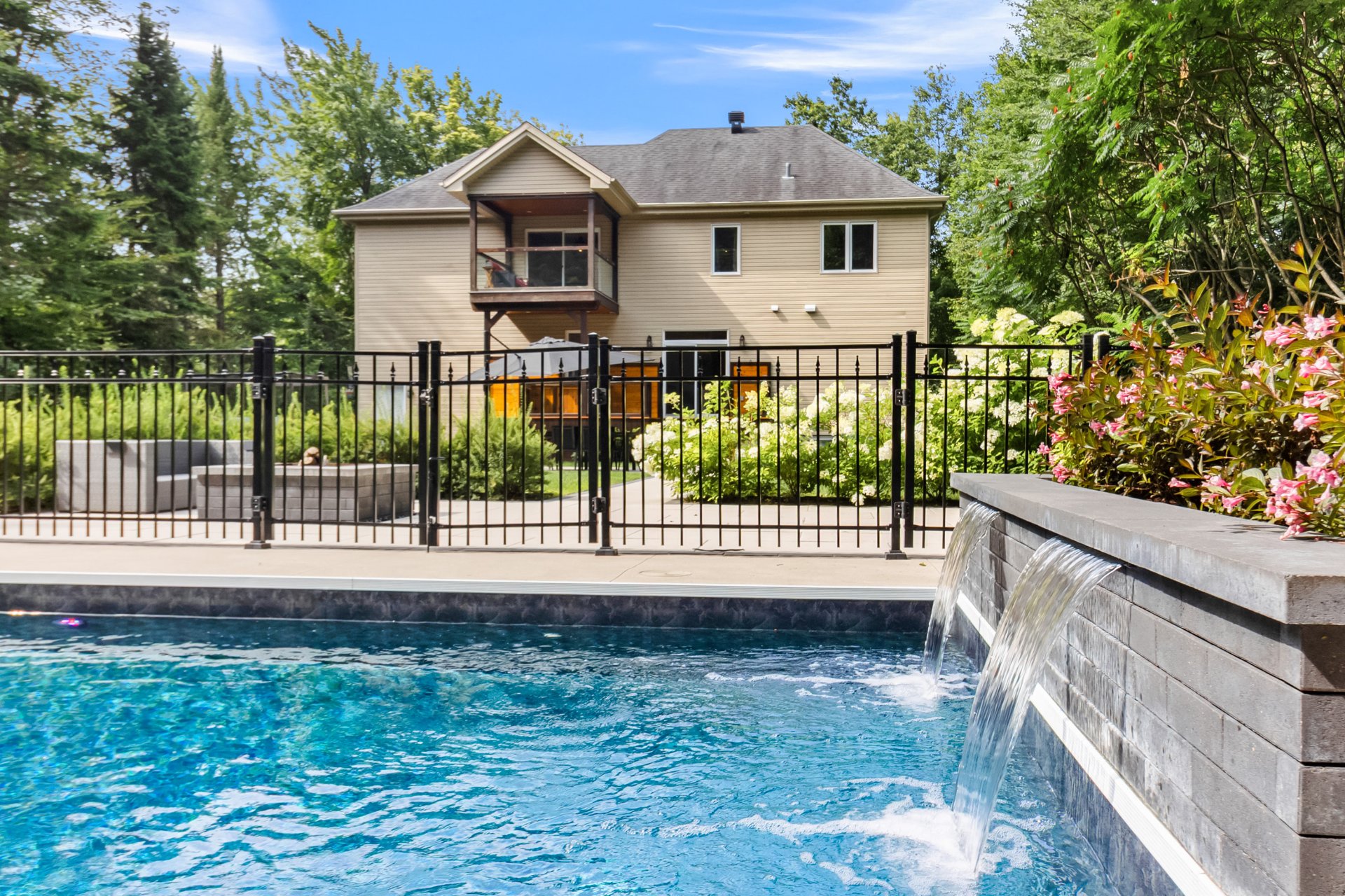 This exceptional two-storey residence offers spacious, light-filled living areas and an elegant kitchen designed for entertaining. The primary suite features a walk-in closet, ensuite bathroom, and covered balcony, while three additional bedrooms, a second bathroom, and a laundry room complete the upper level. The finished basement includes a family room, games room, gym, and more. Outside, enjoy a beautifully landscaped backyard with an outdoor kitchen and in-ground pool. All set on a stunning wooded lot of over 34,000 sq. ft., offering privacy and an exceptional lifestyle surrounded by nature.