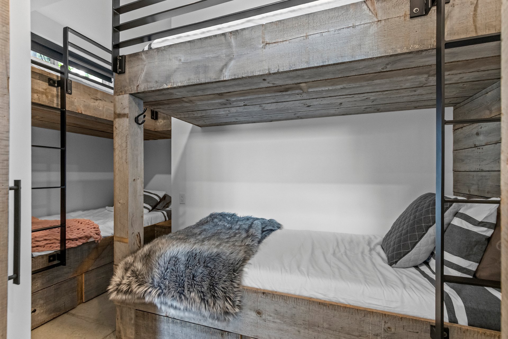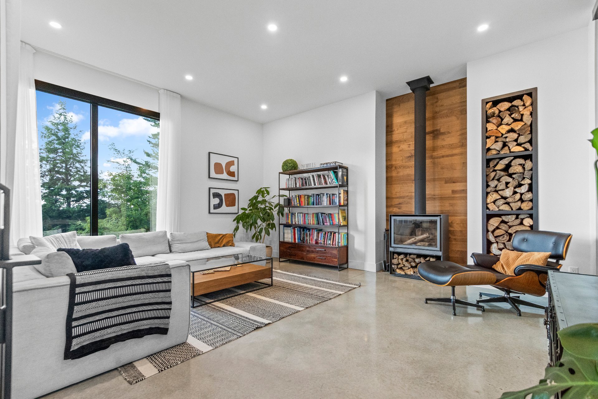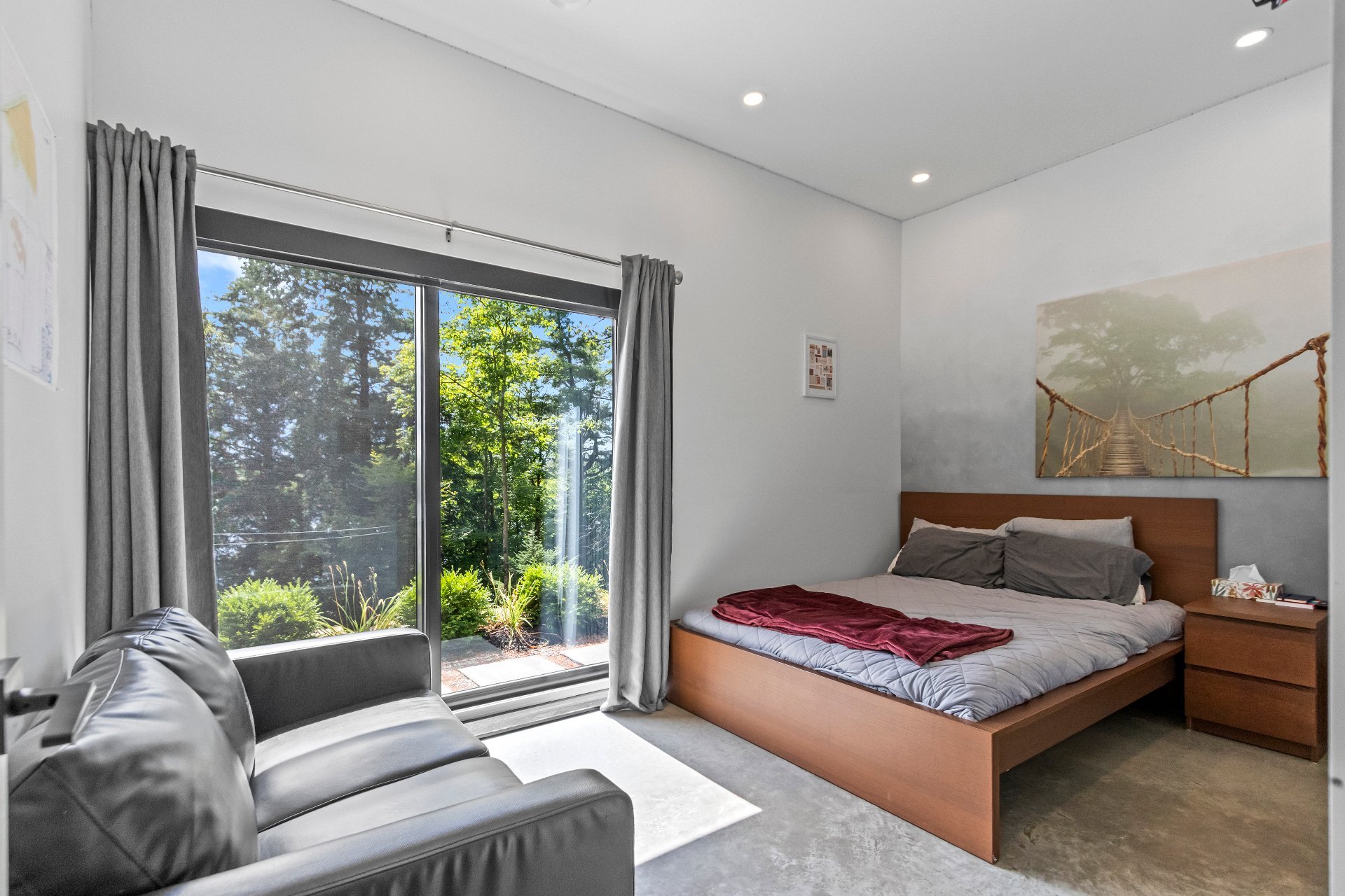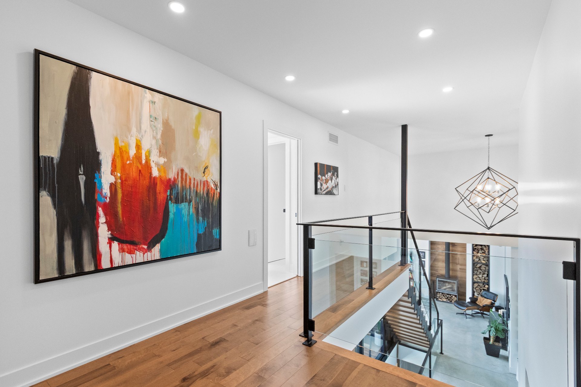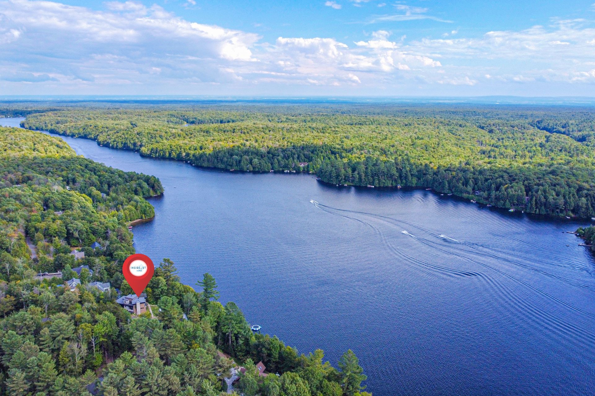 Exclusive custom-built property (2019) on Lake Barron. Offers spectacular views and easy access to the private dock. A contemporary, magazine-worthy home. The main floor is flooded with natural light, featuring 10-ft ceilings and heated concrete floors (glycol). Stunning kitchen with high-end appliances, quartz, and walk-in pantry. Spacious family room with Stuv wood fireplace; glass office (12×12) on two levels and a huge covered terrace. Garden-level basement includes 2 bedrooms, a dorm, gym, family room, and bathroom. Located 12 minutes from all services in Morin Heights.