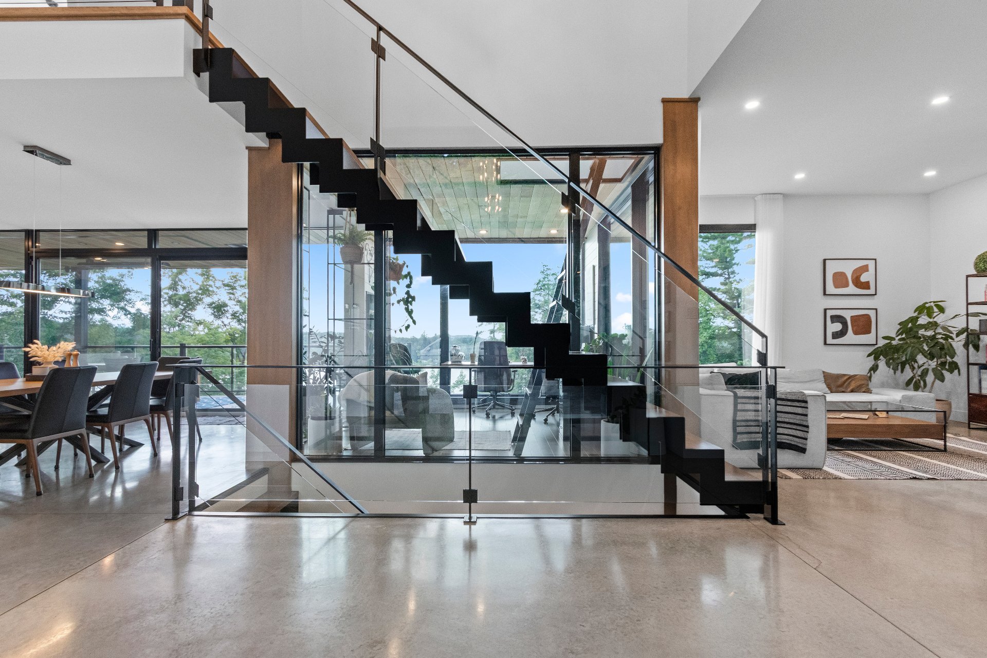 This level also includes a glass-walled 12' × 12' two-story