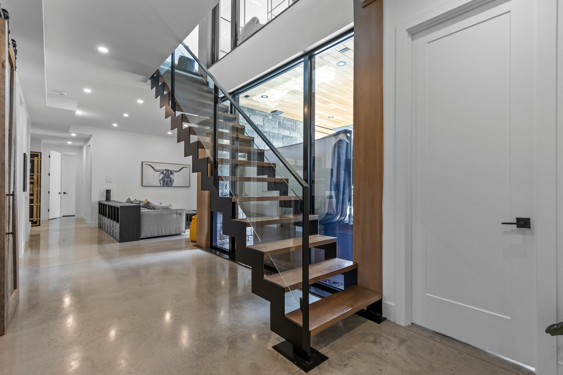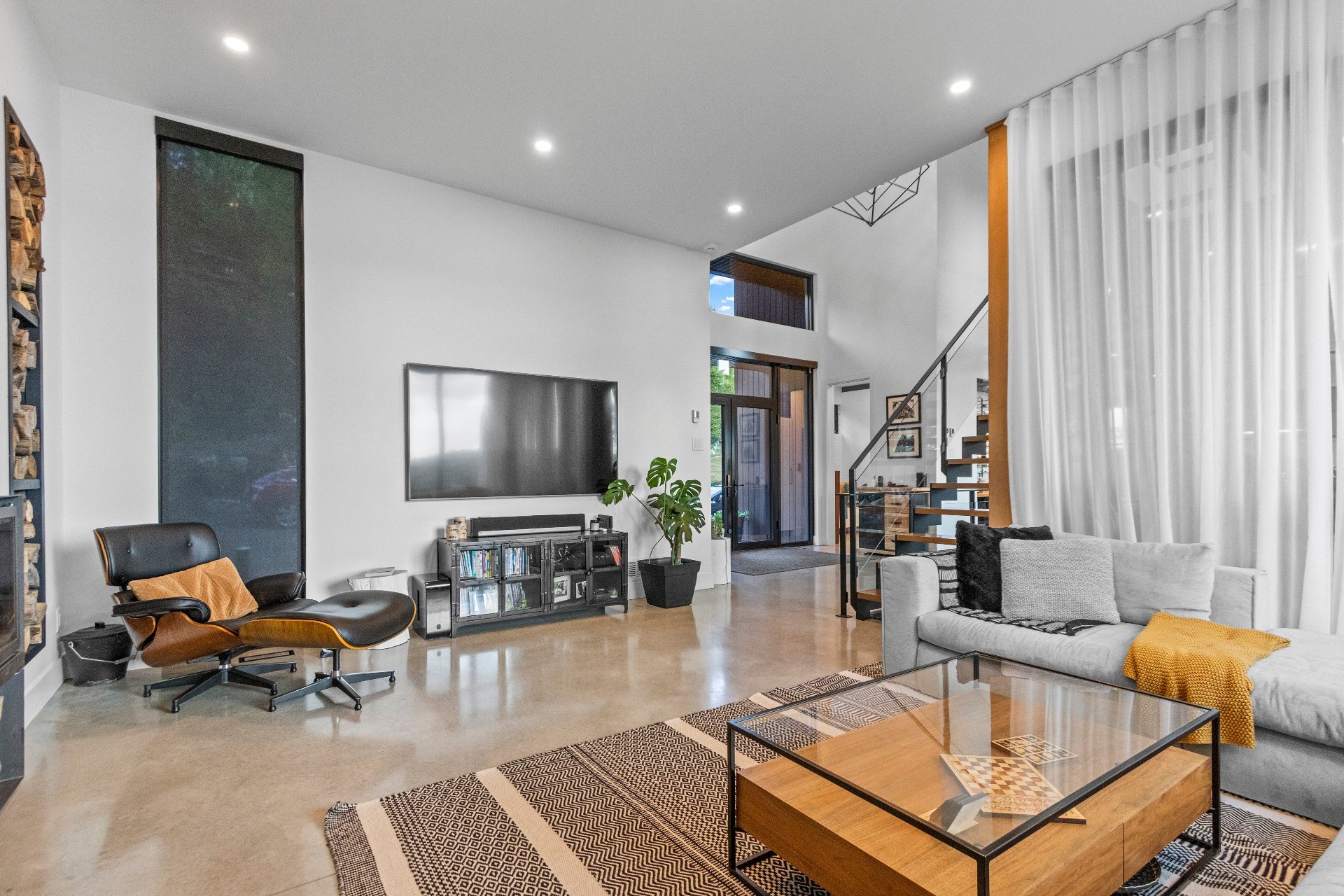 enhance the sense of volume, an open-concept layout, and