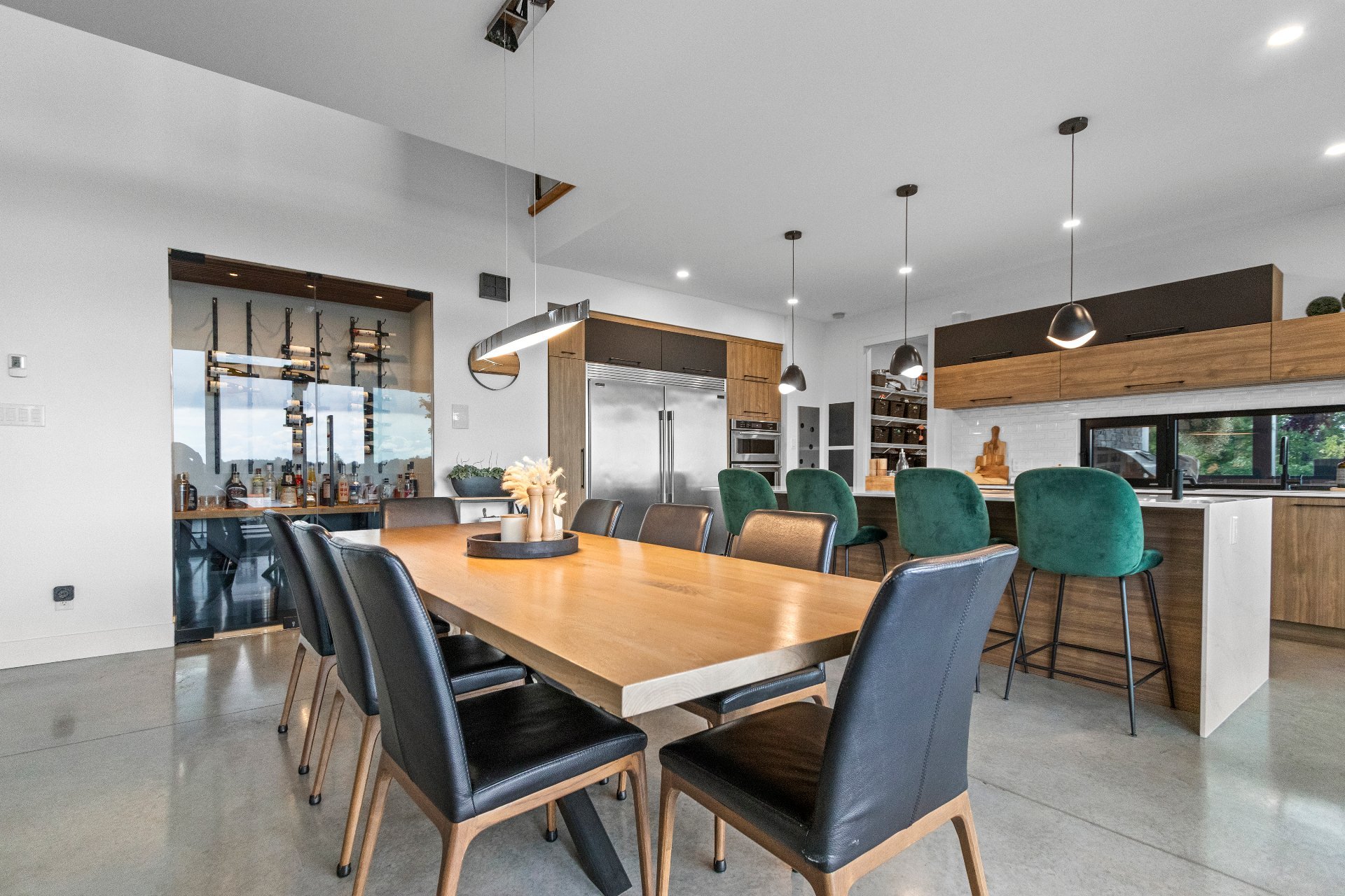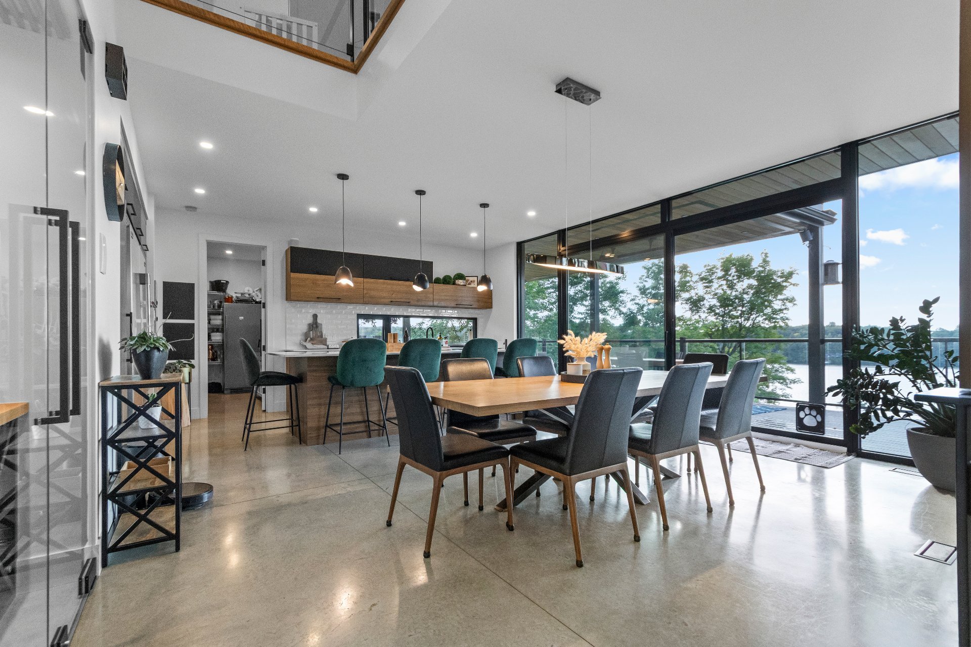 Adjacent to it, the dining area opens onto a vast family