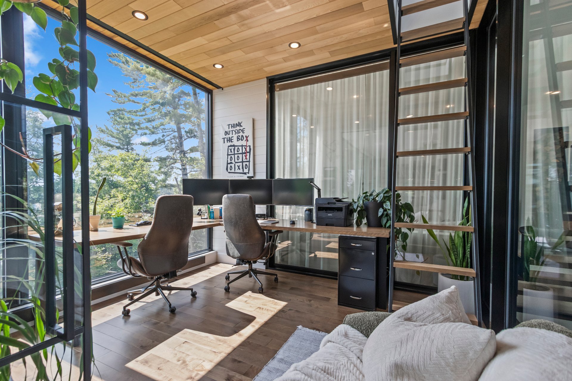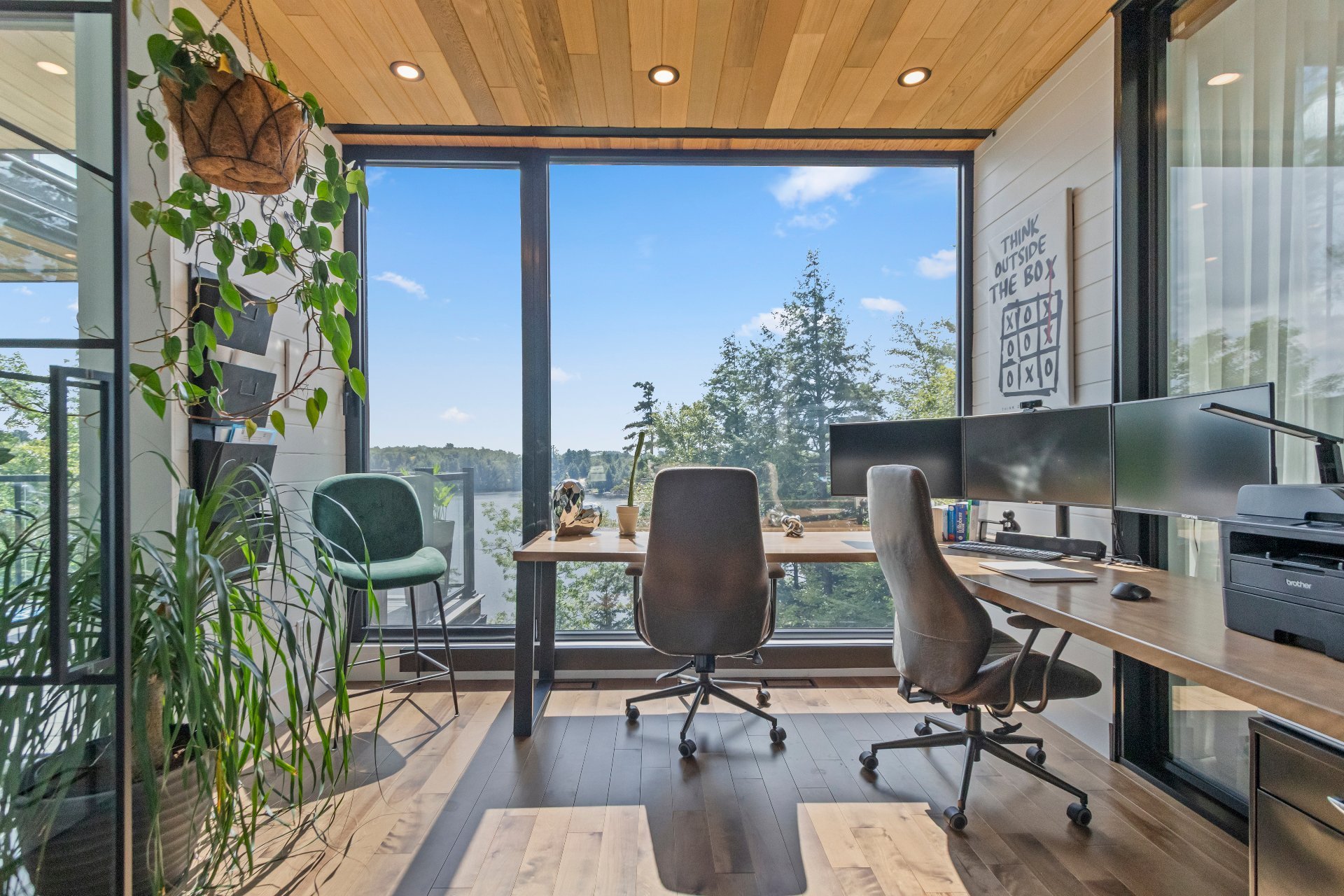 office with a view, as well as a heated double garage of