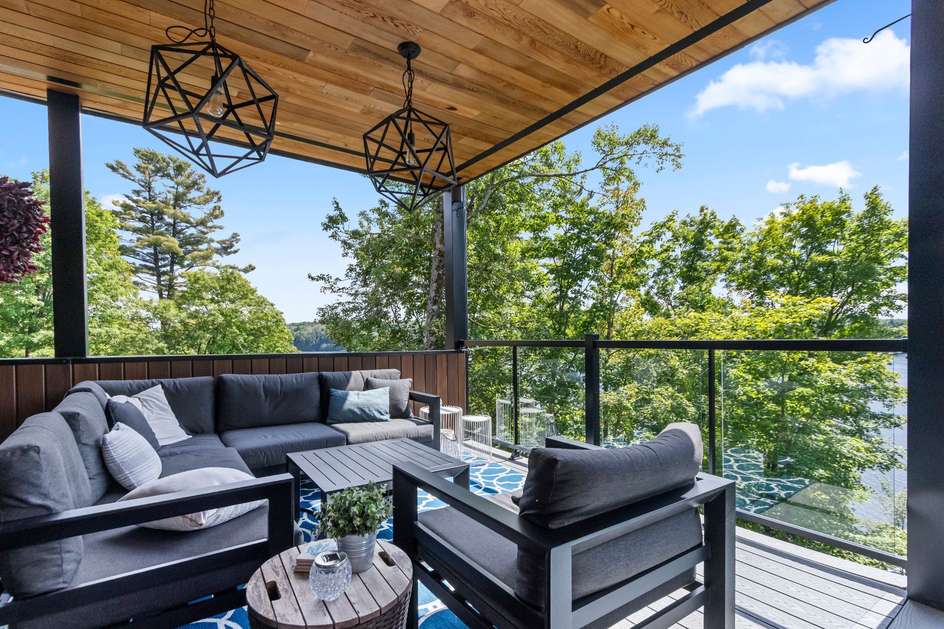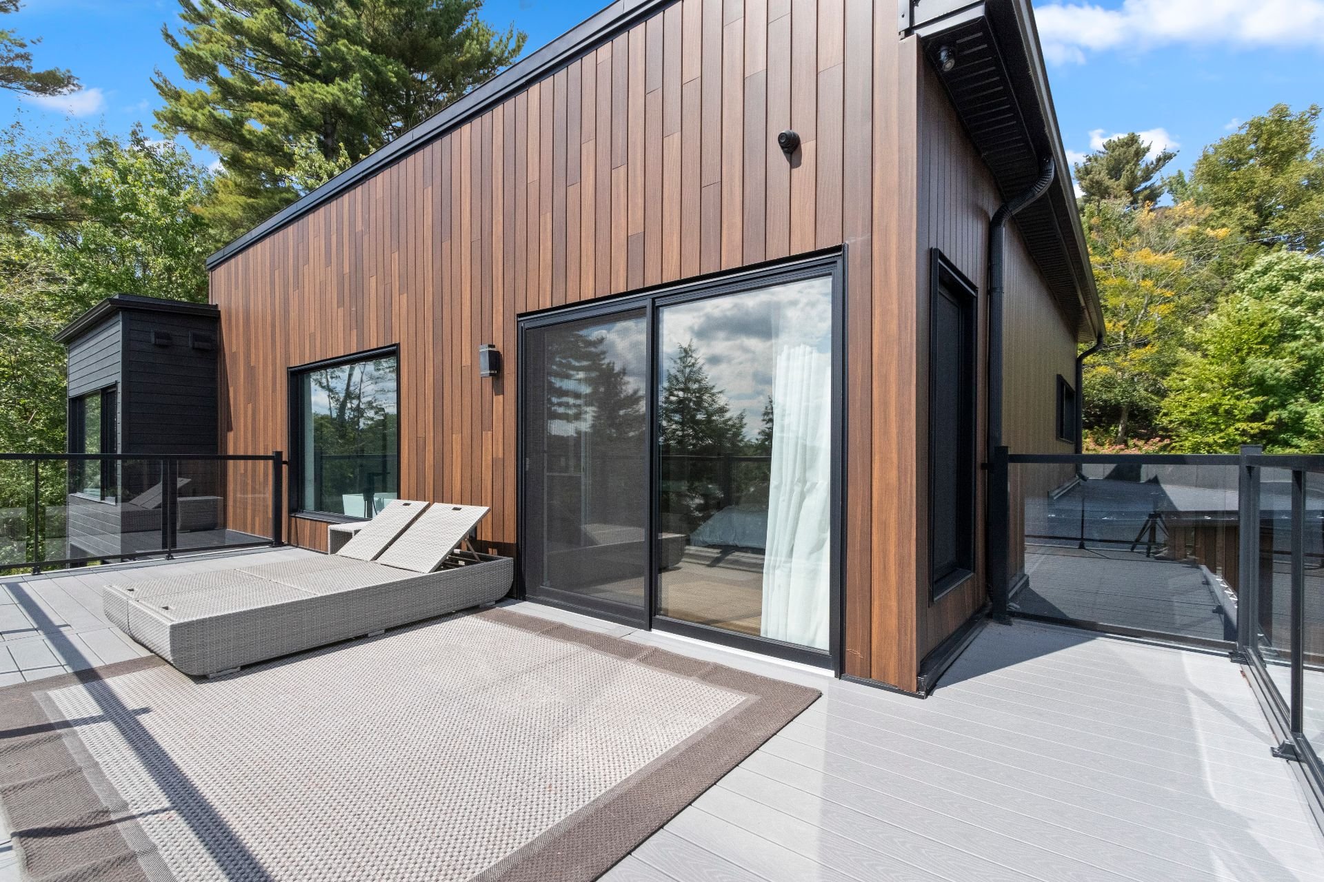 the composite terrace, topped with a wood roof, complete