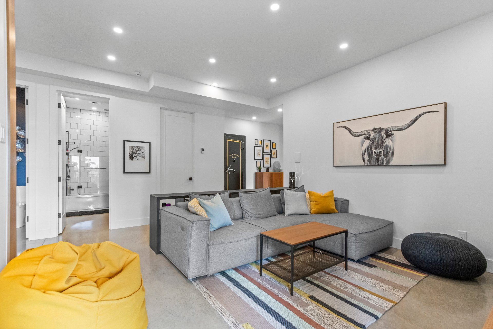 for an airy feel, a large family room/home theatre, laundry